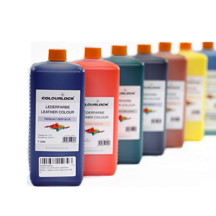 Краска для кожи изготовлена на водной основе и, если следовать инструкциям в каждом конкретном случае (предварительная очистка, растворение, грунтовка, покрытие прозрачным лаком), обеспечивает отличную адгезию и укрывистость. Краситель для кожи одобрен для поверхностного окрашивания автомобильной кожи, мебельной кожи и авиационной кожи. Доступен в базовых цветах, а также в виде смеси специальных цветов.