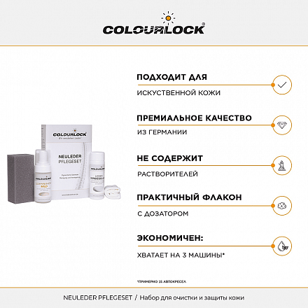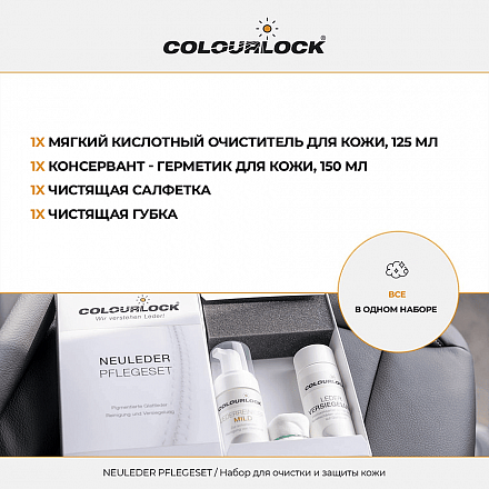- Набор для очистки и защиты кожи автомобиля COLOURLOCK Neuleder Pflegeset mit Leder Versiegelung Leather Shield