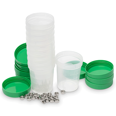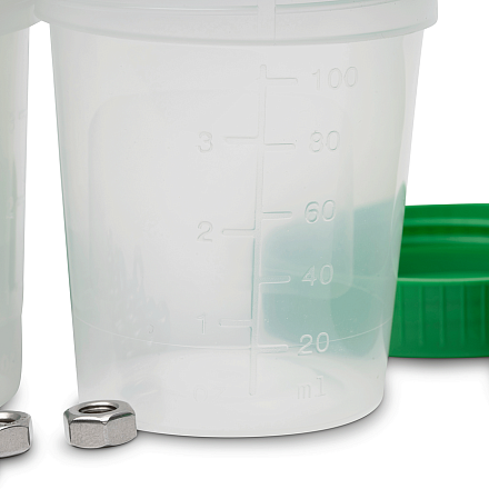 Набор профессиональных мерных стаканчиков предназначен для точного дозирования и смешивания лакокрасочных материалов, идеально подходящих для лабораторий, мастерских и других целей. Все стаканы имеют чёткую градуировку объёма от 20 до 100 мл. Каждый стакан имеет завинчивающуюся крышку и широкое горлышко для удобного наполнения. Идеальное решение для подбора цвета и работы с малыми объемами.