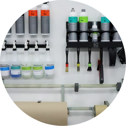 Специальное оборудование для автомастерских позволяет не только правильно разместить свои материалы, повышая эффективность работы, но и придать своему детейлинговому центру современный и гармоничный дизайн KCX.