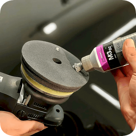 Нанести небольшое количество пасты на круг. Равномерно распределить по поверхности ЛКП. Выполировать до практически чистой поверхности.
