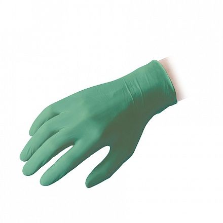 Одноразовые латексные перчатки для работы в различных отраслях. Зелёного цвета