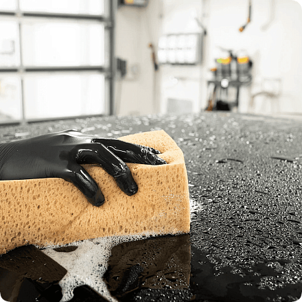 Используйте 50–80 мл шампуня на один автомобиль (расход зависит от настроек пенокомплекта). Нанесите пену и промыть поверхность губкой, (не допуская высыхания!) и смойте водой